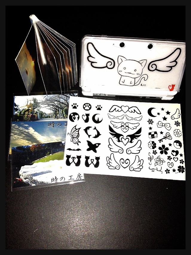 カットステッカーとはステッカーシートを手や機械で切って作ったもので、耐水性がありゲーム機、携帯、小物、車などの平らでツルツルしているとこらに貼ることが出来ます。