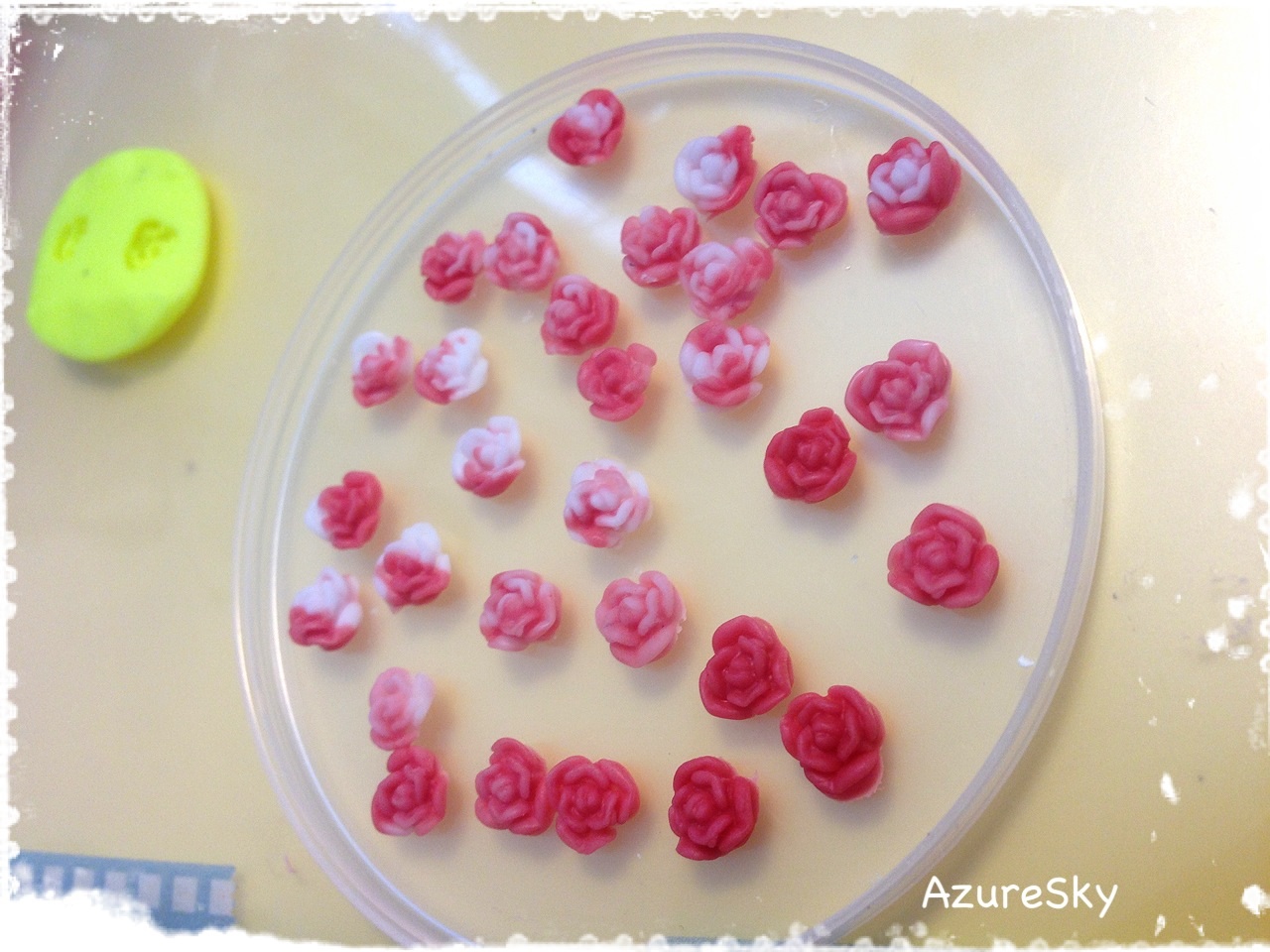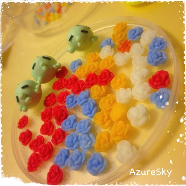 アリスのペンキついたところをイメージして二色マーブルの薔薇も作りました