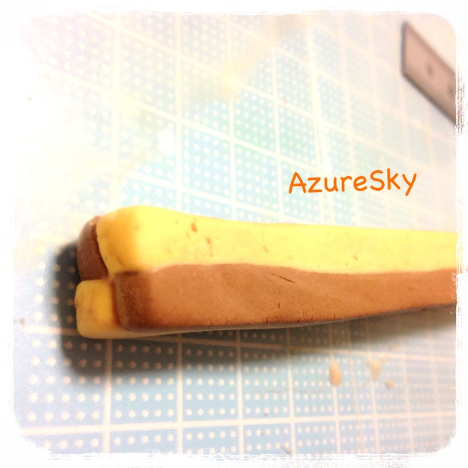 細長い角材のようにプレーンとココアを切り、薄くボンドを付けて四角になるように組み合わせてしばし乾燥。