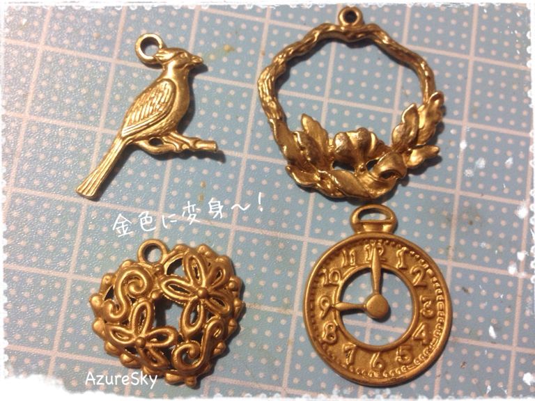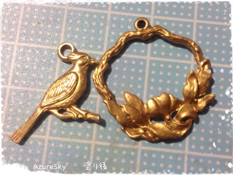 元々は金古美色のチャームに金色で着色。