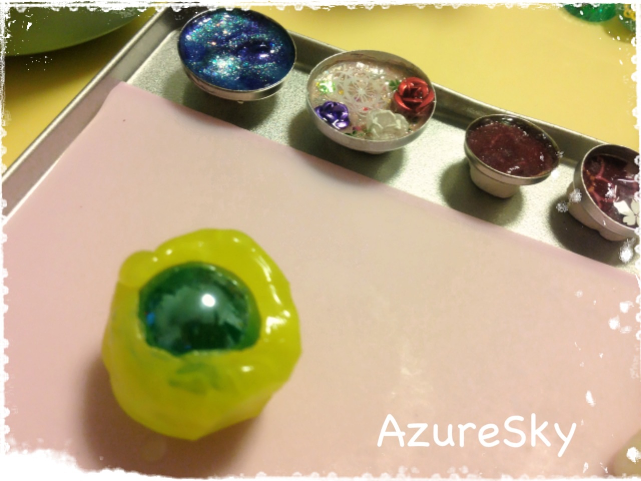 あと、やろうと企んでいたくるみボタンのお皿でもレジン試し始めました。