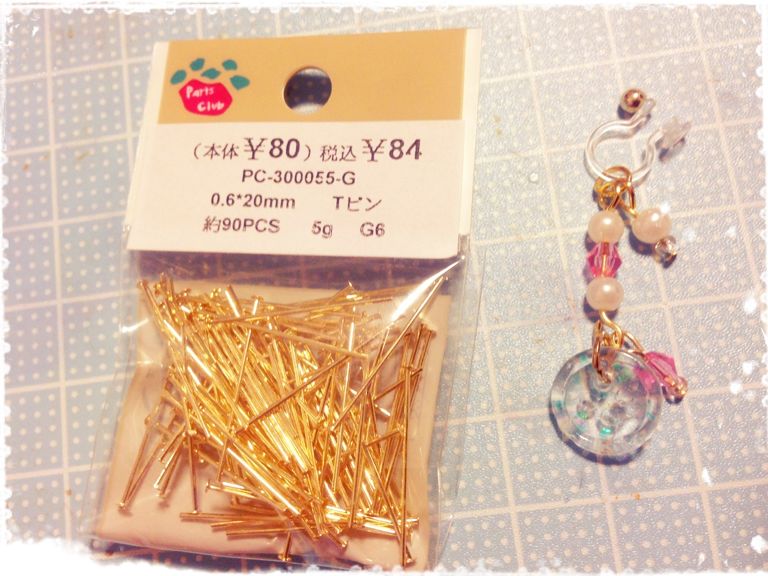 パーツクラブさんに行ったらTピンが安かったので購入。100均にも売ってたりしますが、太くて丸小ビーズが下まで通らなかったりするんですよね(´・ω・`)