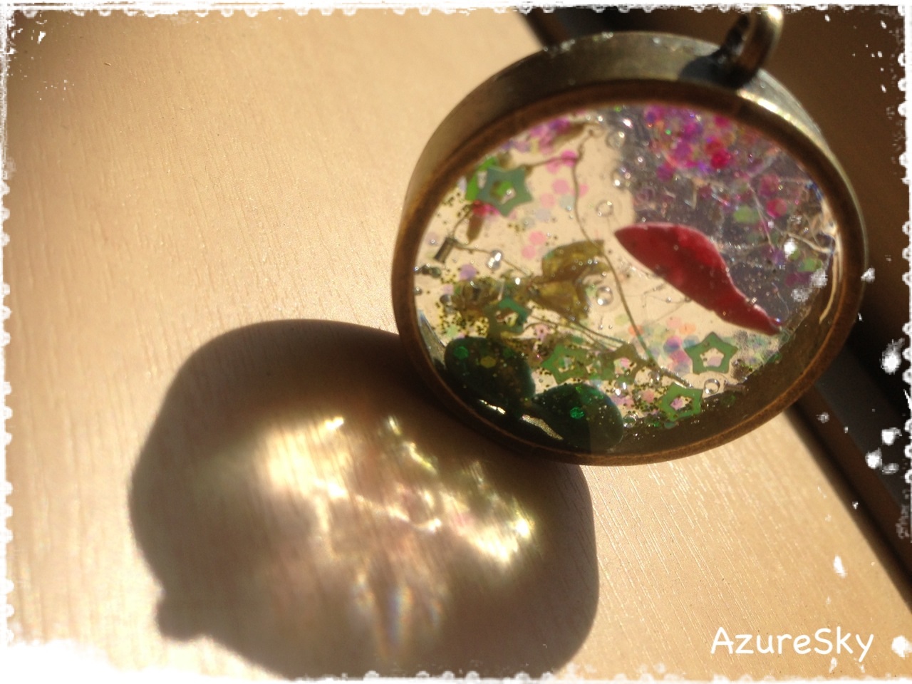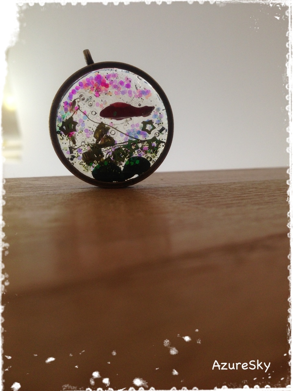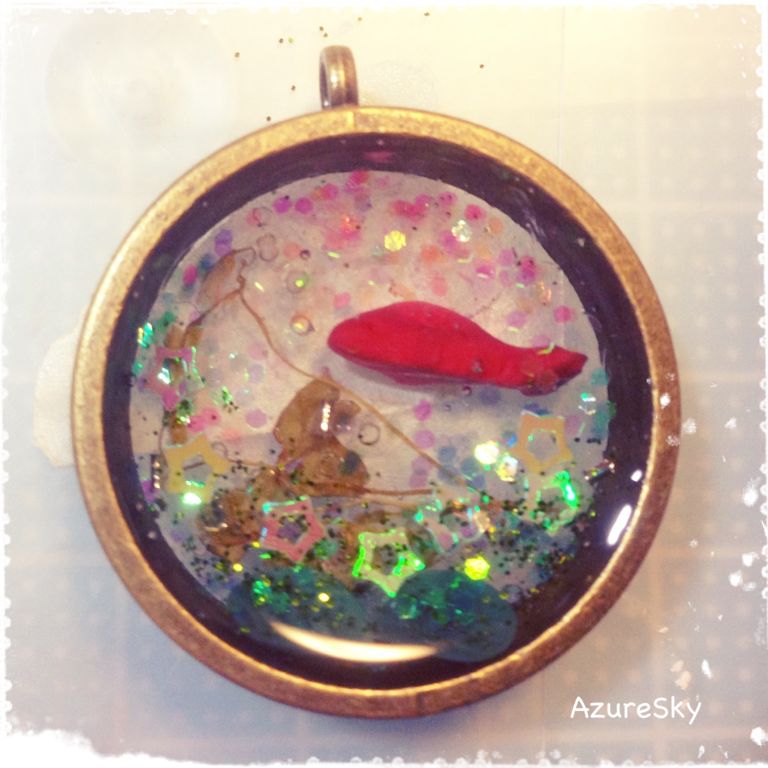 中に封入した金魚もドライフラワーの葉っぱも底にある葉っぱも全部手作りです( ' ワ '*)ノ